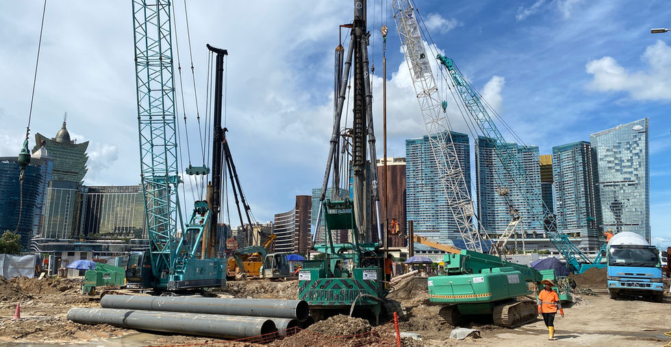 鑽孔灌注樁基礎、地庫開挖及支護、鋼筋混凝土結構、鋼結構天橋、室內精裝修及機電設備